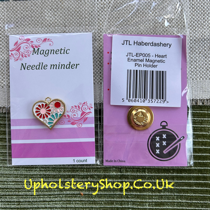 Simply place one magnet on the front of your fabric, and the other behind, and your needle stays securely in place.
