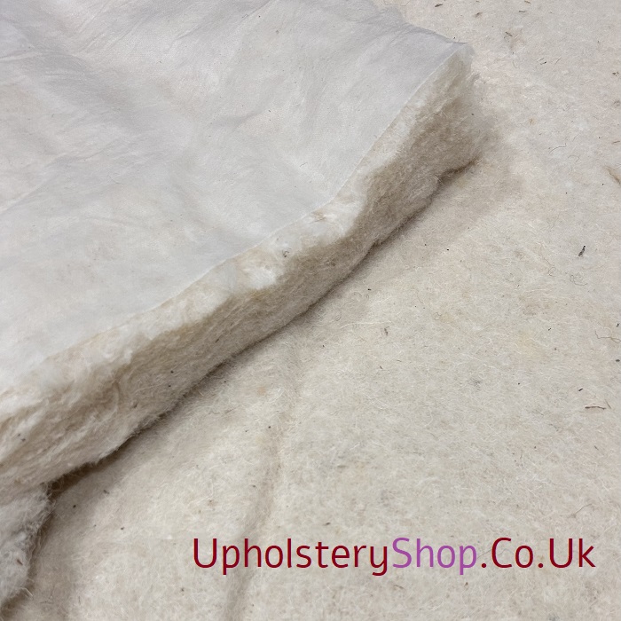 A white carded cotton waste product made into a thick uncompressed layer. Used for building up the final padded finish and for preventing hair or fibre from coming through to the top cover.